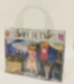 With lucite or tortoise colored handles, snap closure and inside pocket.