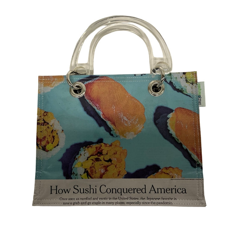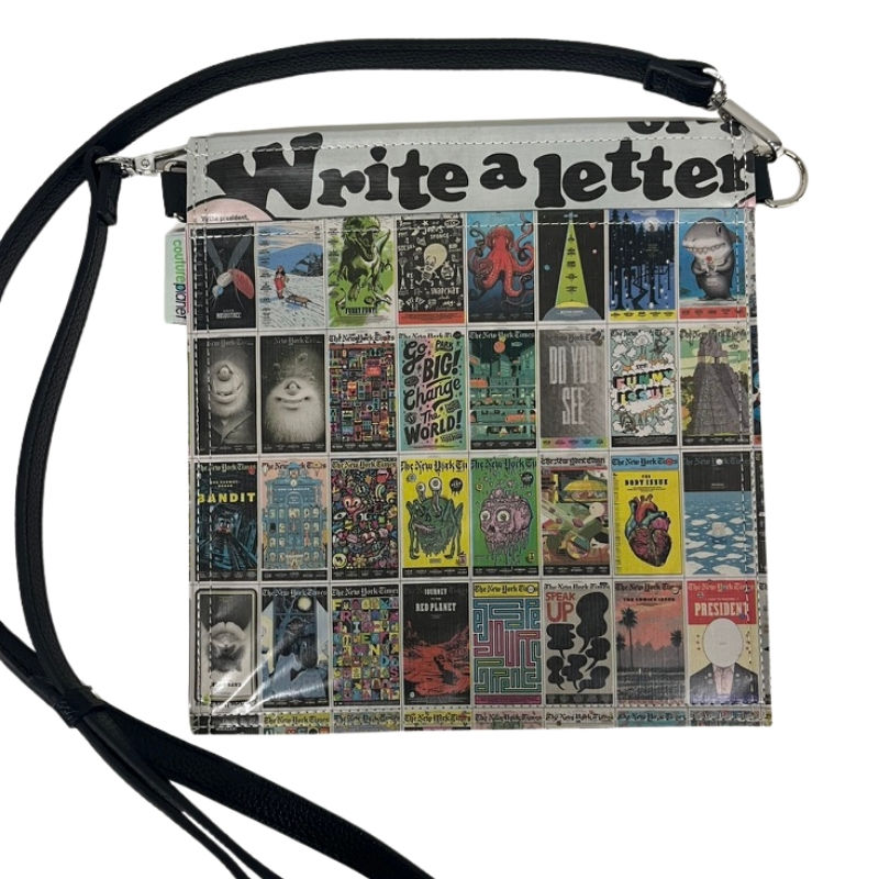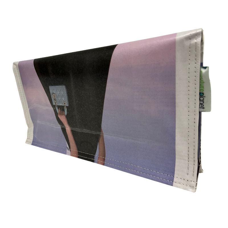 The Lauren is our wristlet -- a terrific eco-friendly accessory to take out for a night of dancing or carried inside a larger bag. Zipper closure. Available with a nickel plated fashion chain or repurposed leather strap fabricated here in New England. Please be sure to indicate handle choice on your order.